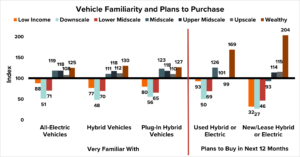 Considering consumer demand and concerns, automotive companies should develop a nuanced approach for transitioning to EVs. This is especially true with lower income categories who will be looking for economical choices including used hybrids and EVs.